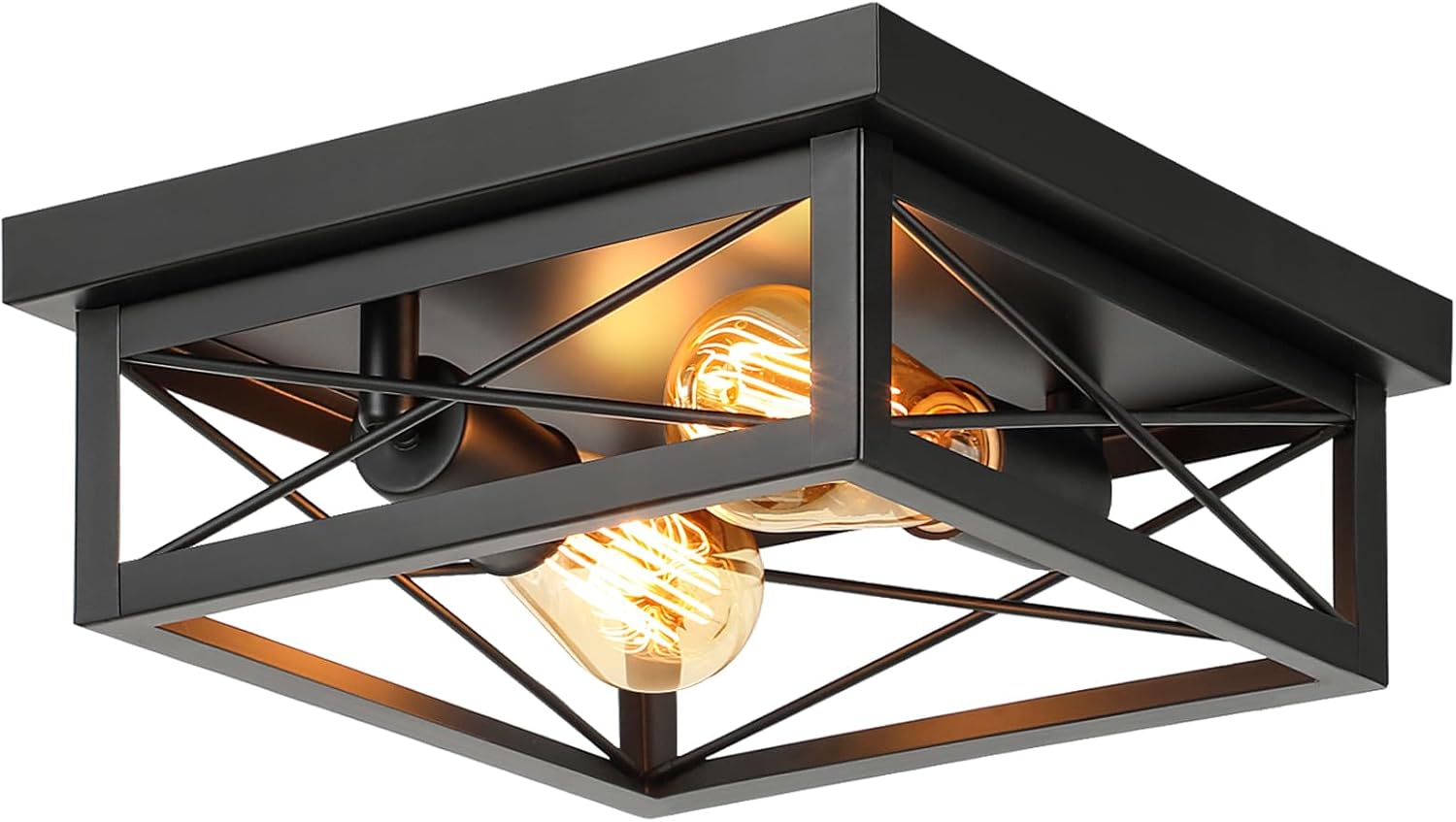 The modern 2-light ceiling light fixture is made of high-quality metal, high strength welding, baking paint. It is long lifespan and helps you save time & money in replacing the lamp. The special square shield frame with unique "X" shape line design, built its stylish modern look. It will well match with all kinds off styles and also can be a eye-catching decor ceiling light among your space!