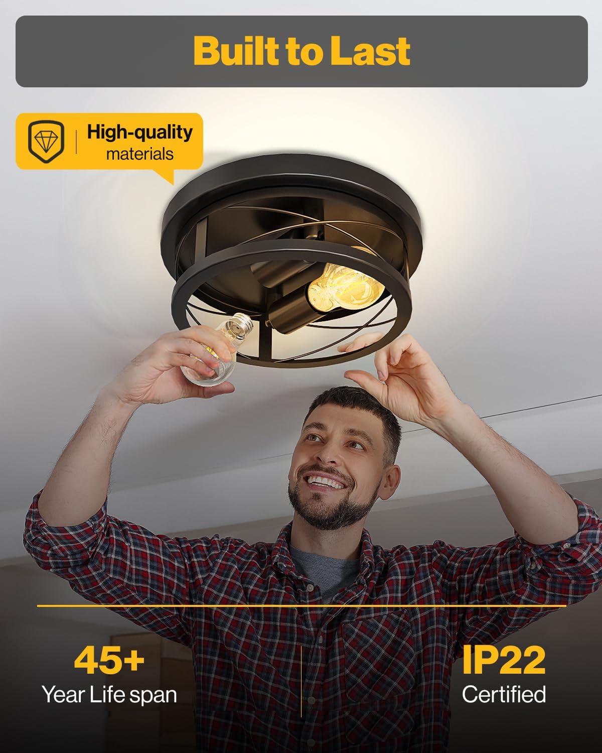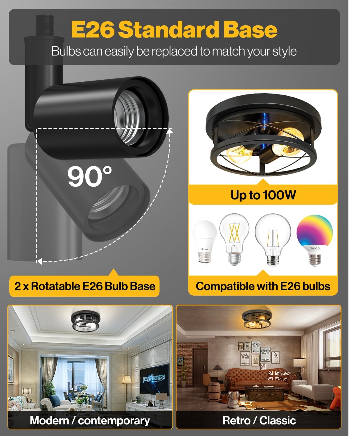 Sunco Farmhouse Ceiling Light Fixtures, Rustic Ceiling Light Fixture for Foyer, Bedroom, Hallway, Kitchen, Living Room, Den, 11 Inch Diameter, E26 Medium Base, Max 100W 2 Pack